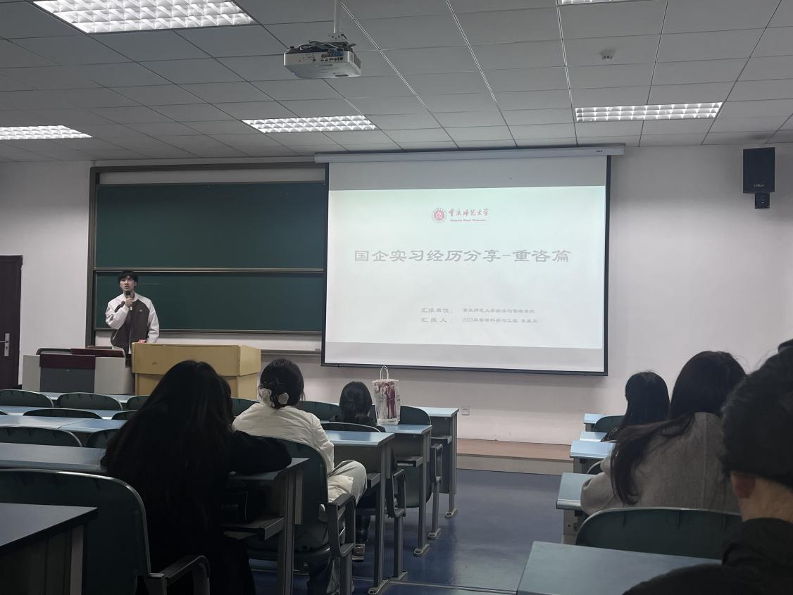 2025年3月13日13:30,2138cc太阳集团于求是楼213教室举办第十五届“博望经管·研究生论坛”实习经验分享会。本次论坛旨在为研究生提供了解职场、行业趋势及企业需求的平台,由陈懿盟(2022级管理科学与工程)与李胤龙(2023级管理科学与工程)主讲,2023级全体硕士研究生参加。