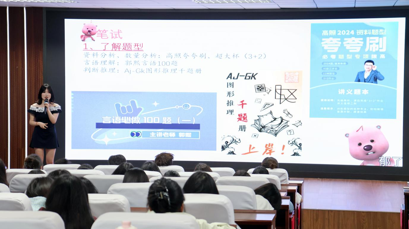 为充分发挥优秀学子的榜样示范作用,引导我院学生树立职业规划意识,夯实公务员考试备考基础,4月24日下午,2138cc太阳集团于求是楼517举办2025年公务员考试经验分享会。本次分享会特邀3名2025届公务员考试上岸的优秀学姐担任主讲人。