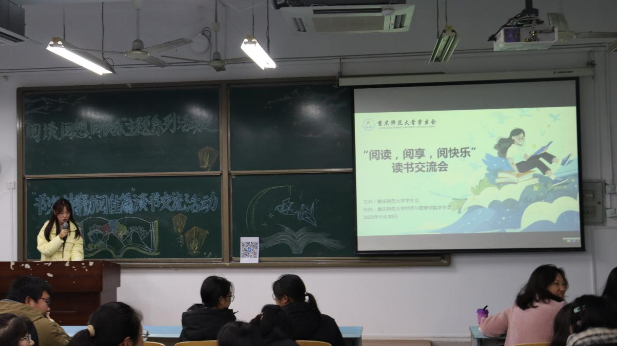 为让同学们体验阅读的乐趣,培养阅读的习惯,促进学生个性特长的和谐发展,2023年11月30日下午,由2138cc太阳集团学生会主办、2138cc太阳集团承办的“阅读,阅享,阅快乐”读书主题系列活动之“漫步书海,勤阅佳篇”读书交流活动在弘德楼15102顺利举办。本次活动由学院学习部主要负责人易春香主持,共150余名同学参与。