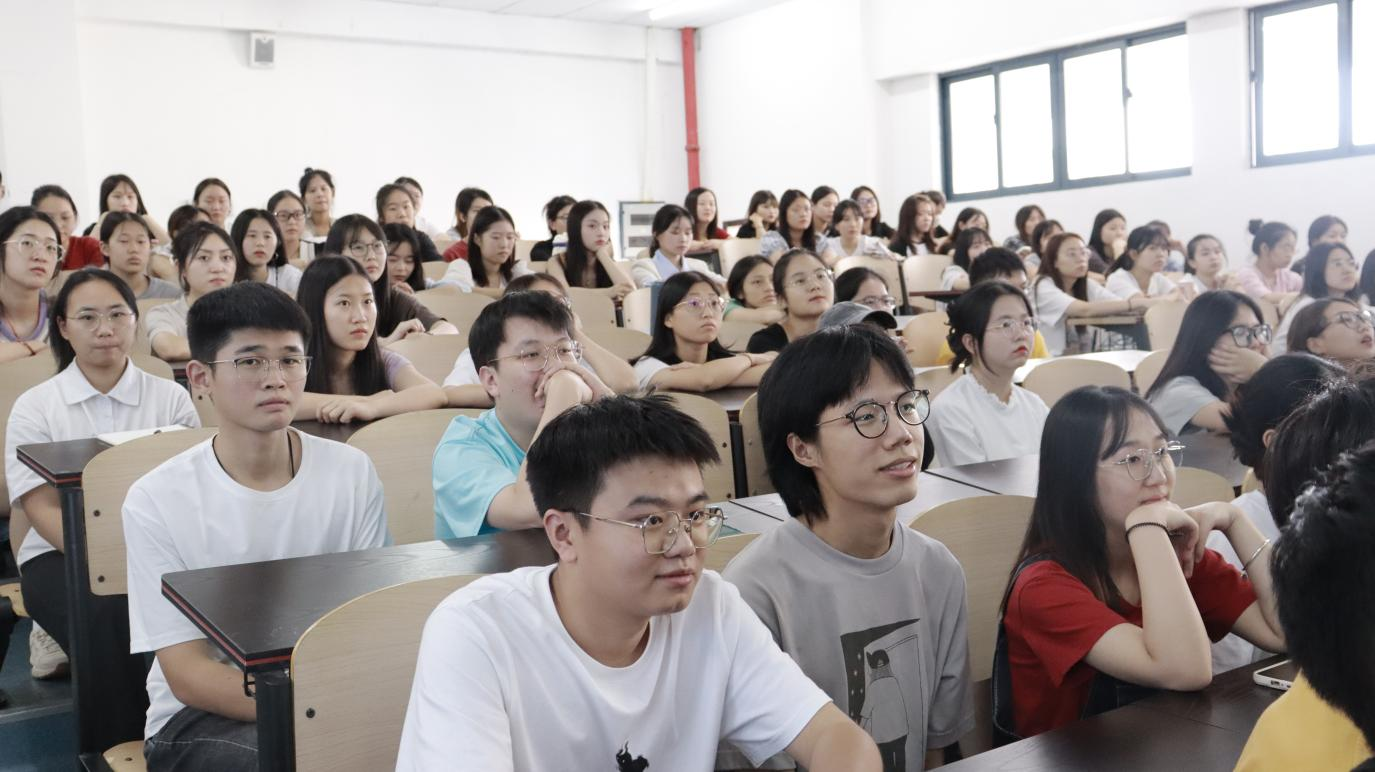 钟敏书记向在场同学分享了自身研学经历、职业选择与探索等宝贵经验和独到心得。她谈到,大学生择业需演奏好“知己、知彼、提升高端能力”的“三部曲”,第一在日常学习生活中通过多渠道充分认识自己,确定感兴趣的工作;第二把握社会组织对人才的深层需求规律的基础,合理分析并定位自身发展方向;第三有意识、有目标地培养自身能力,在点滴中成长,最终实现从消耗者到创造者的转变。