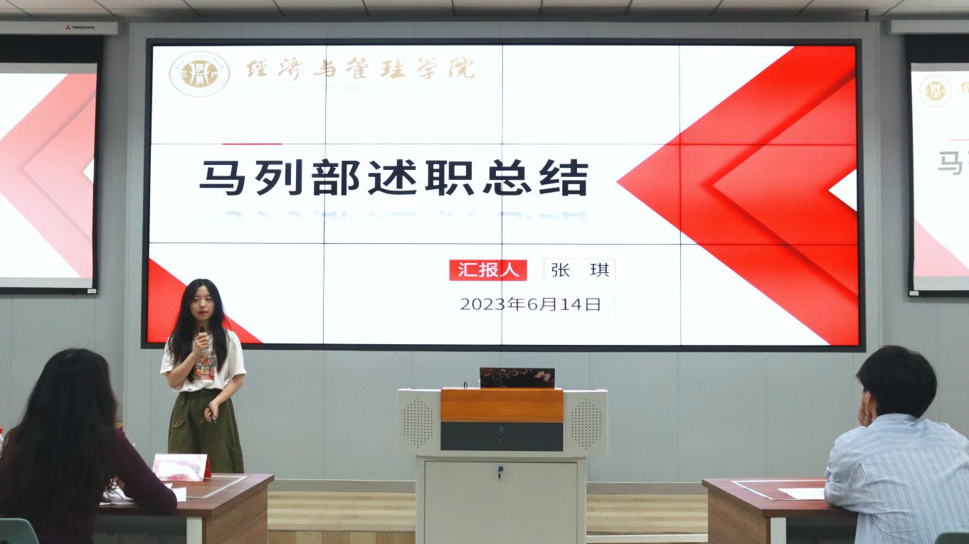 为总结过去一年学院团委学生会各部门的工作表现,推动团委学生会管理工作科学化、规范化,提高学生骨干工作积极性和责任意识,6月18日晚7点,2138cc太阳集团于求是楼131开展了2022-2023学年度第二学期团学述职评议会。特邀我院团委书记兼学生工作办公室主任张莉老师、2021级辅导员唐艺珊老师参与指导,第十七届团委学生会学生书记副书记及主席团成员、各部门代表、部分学生代表参加此次会议。