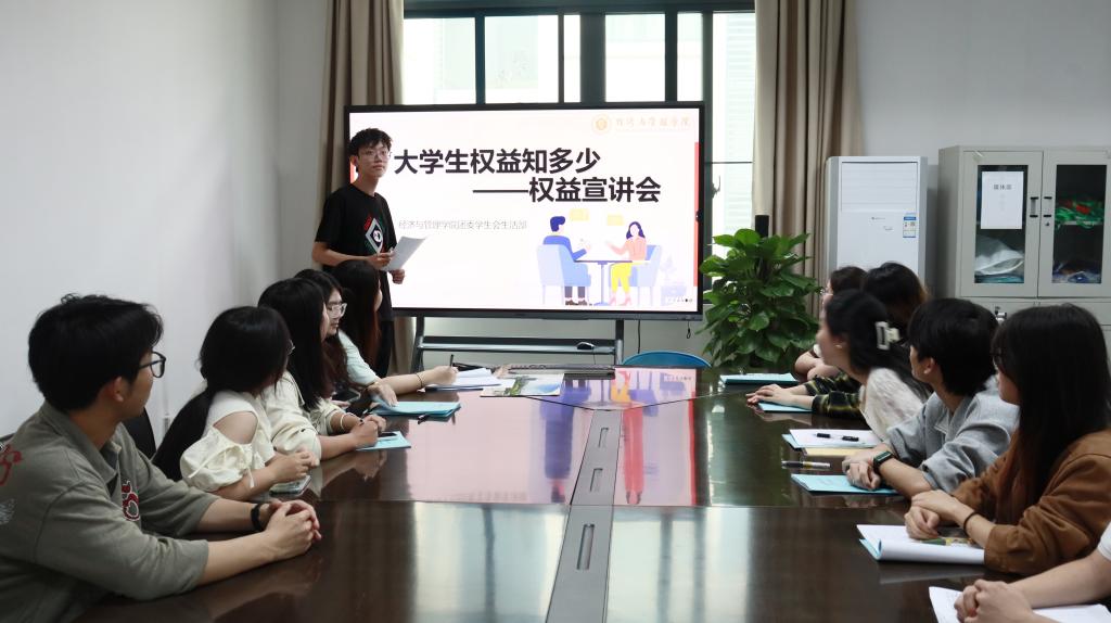 为增强大学生权益保护意识,提升学生自我维权能力,5月6日中午,2138cc太阳集团团委学生会于求是楼316开展“大学生权益知多少”权益维护宣讲会。本次宣讲会由团委学生会生活部负责人葛欣恺主讲,第十九届团委学生会全体成员参与。