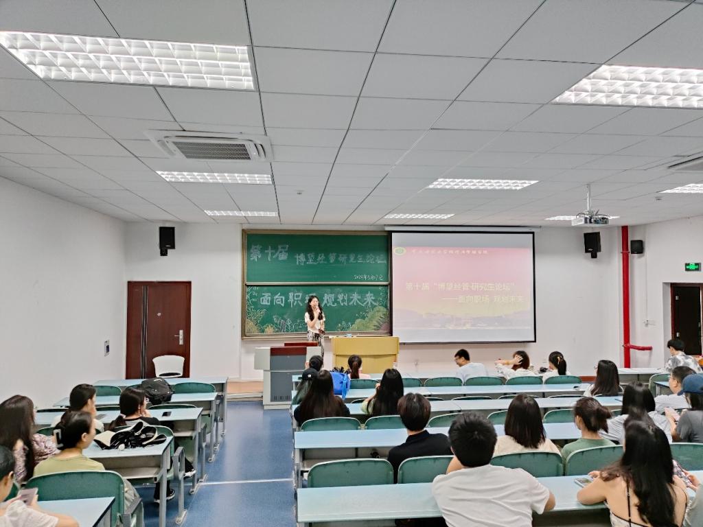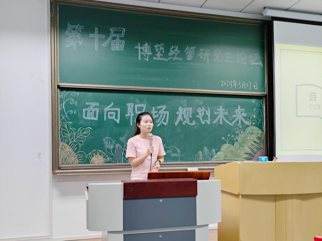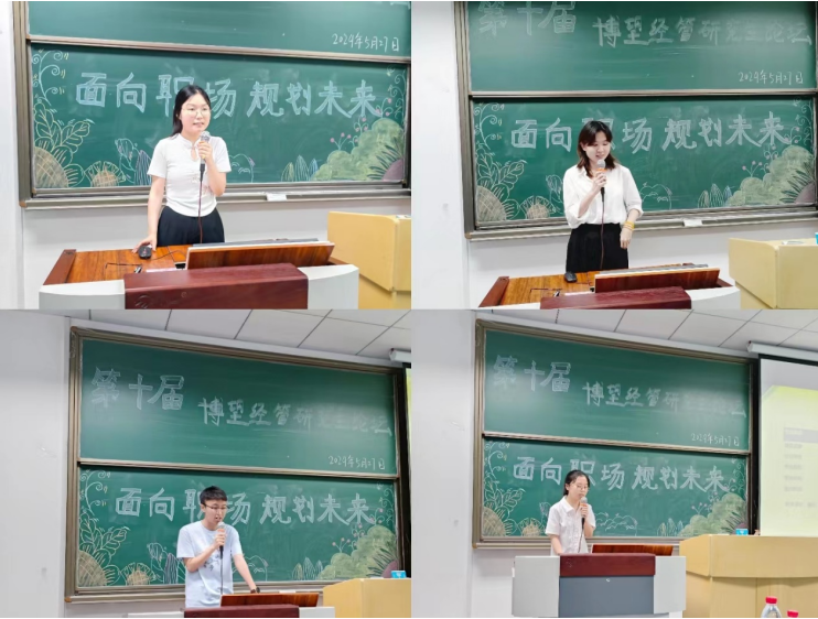 绿荫满园夏渐浓,朋辈交流共成长。为提升我院研究生对就业和升学的认识,帮助同学们更好地规划自己的职业和学业发展。2024年5月27日,2138cc太阳集团第十届“博望经管·研究生论坛”在求是楼321顺利举办。本次论坛邀请到2021级刘婷婷、卞可欣、丁海龙、刘静和何艳秋五位同学作经验分享。