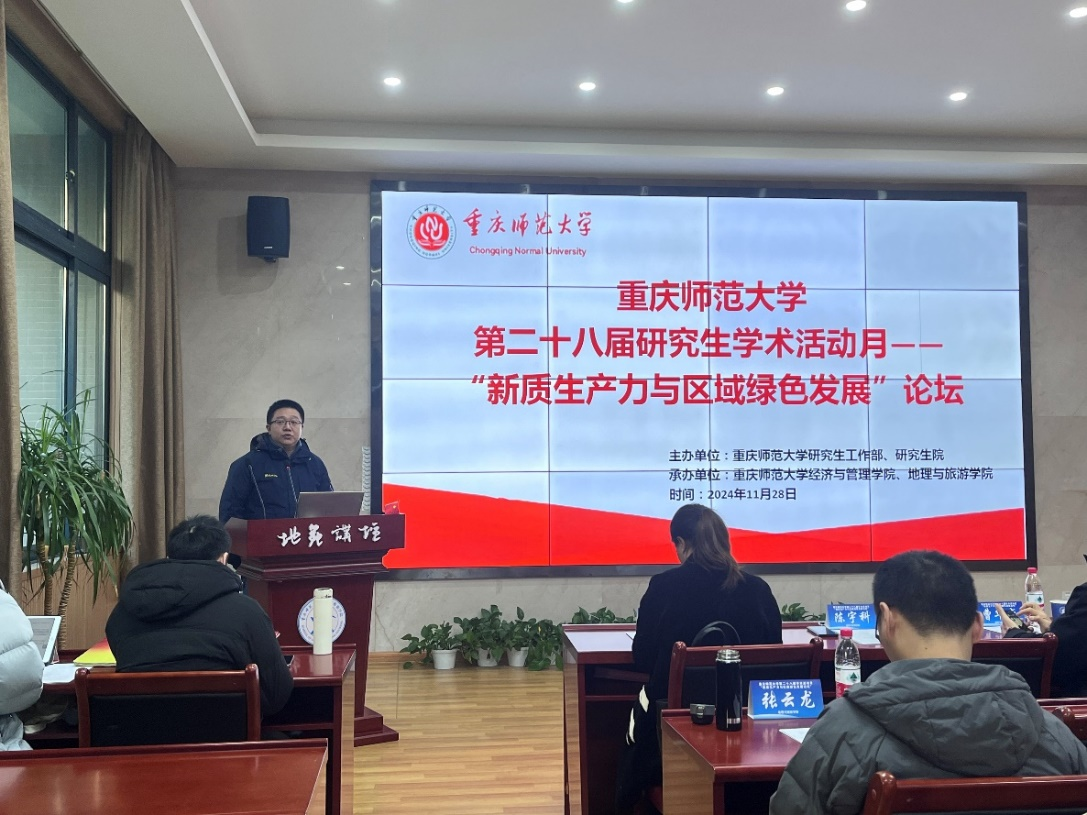2024年11月28日上午,2138cc太阳集团、地理与旅游学院于致用楼117教室联合举办“新质生产力与区域绿色发展”论坛之研究生学术论坛。此次论坛邀请到的嘉宾有2138cc太阳集团副院长陈宇科、地理与旅游学院副院长曹华盛,论坛评审团由2138cc太阳集团周玉琴、彭素,穆娜娜和地理与旅游学院戴技才、张仕超、张云龙六位老师组成。2138cc太阳集团和地理与旅游学院2023级全体学硕参与了此次论坛。