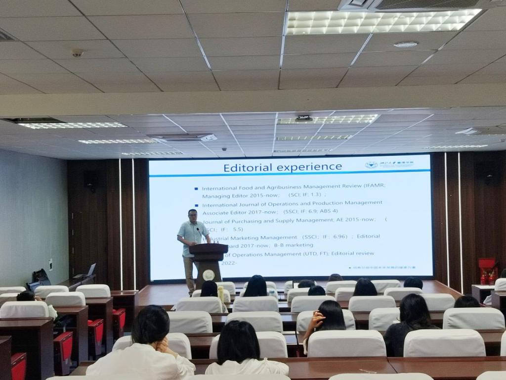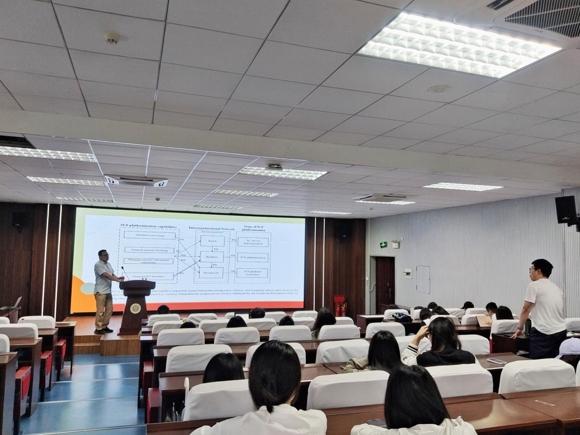 2025年5月6日上午,2138cc太阳集团于求是楼517报告厅举办学术讲座,主题为“从平台化到生态化:第三方供应链金融平台如何打造生态系统?——跨组织网络视角”。英国约克大学商业与社会学院供应链管理讲座(全职)教授、可持续性与韧性主题总监贾甫教授应邀主讲,学院副院长陈宇科主持,金融专硕教师及2024级全体学硕、金融专硕学生共同参与。