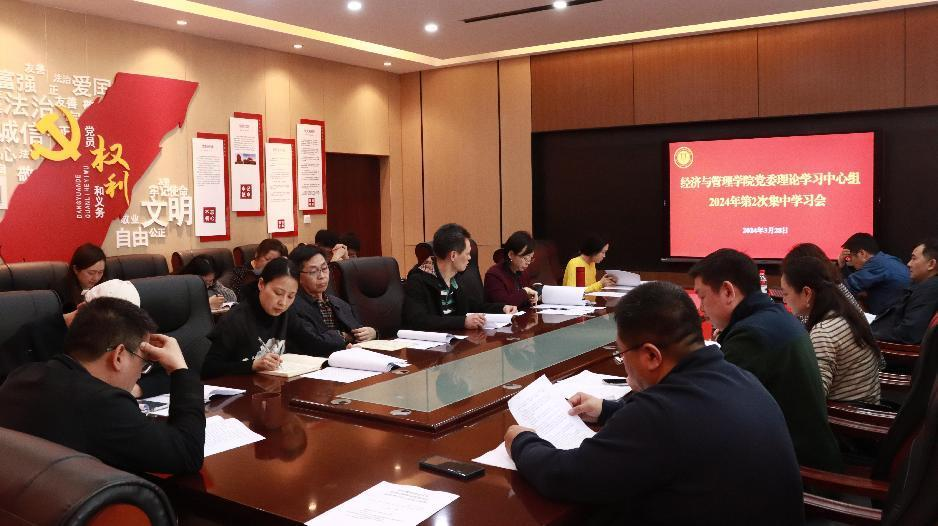 2024年3月28日,2138cc太阳集团在求是楼420会议室召开党委理论学习中心组学习会。党委委员,纪委委员,支部书记参加学习会。党委书记钟敏主持会议。