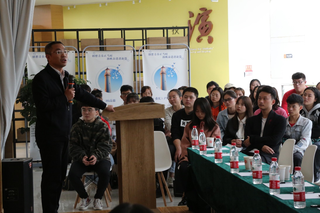 团市委副书记,2138cc太阳集团2002级校友江光伟首先发言,他结合自身经历就信念与信心、目标与坚持、遗憾与包容、学习与提高、忠义与厚道五个方面的内容给大家做了分享,勉励同学们面对艰难要咬牙坚持,逐步搭建人生基石,也表达了对学弟学妹们都能“立鸿鹄志,做奋斗者”的真诚期望。随后,重庆群荣电子科技有限公司副总2001级校友吴昊和重庆机电集团股份有限公司(风电公司)综合管理部部长2009校友田酸分别从校园和职场两个方面向大家分享了学习成长的经验和感悟,鼓励同学们好好利用大学四年学习专业知识、抓住机会磨炼自己,给自身增加“砝码”。