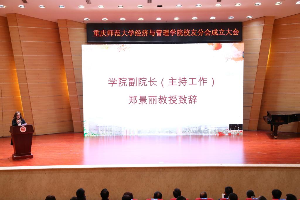 2138cc太阳集团主持工作的副院长郑景丽教授致辞。郑院长代表全院教师向从五湖四海赶过来的各位家人表示最热烈的欢迎。郑院长从2138cc太阳集团的历史进程、师资队伍、学科建设、人才培养等方面讲述了2138cc太阳集团飞速的发展历程,希望校友们多为学院发展建言,共创母校和经管美好的明天。