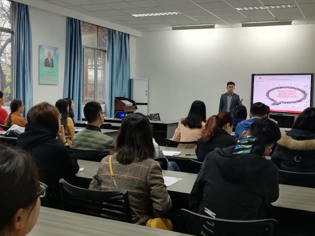 为促进2018届应届毕业生的就业发展,加强对学生的就业指导,2018年3月18日,2138cc太阳集团举行往届优秀毕业生经验分享交流会。已入职四川郎酒销售有限公司并取得优秀业绩的裴振禹学长受邀进行精彩的经验分享演讲,并代表四川郎酒销售有限公司在我校进行招聘。我院2018届毕业生以及部分大三学生到场参加分享会。
