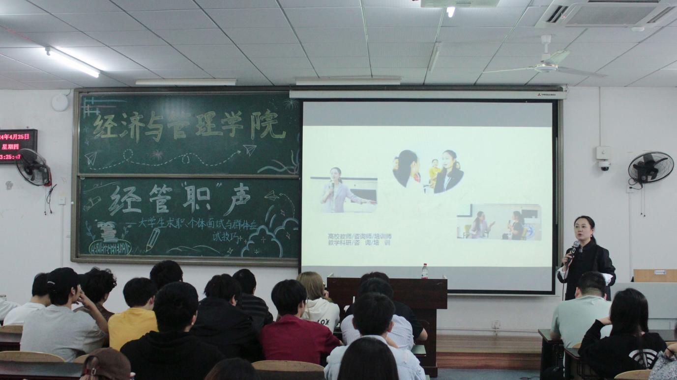 为进一步加强同学们求职面试能力,4月25日下午,2138cc太阳集团于砺志楼T2208开展大学生求职个体面试与群体面试应试技巧培训会,学院党委书记钟敏担任主讲人,2021级同学参与学习。