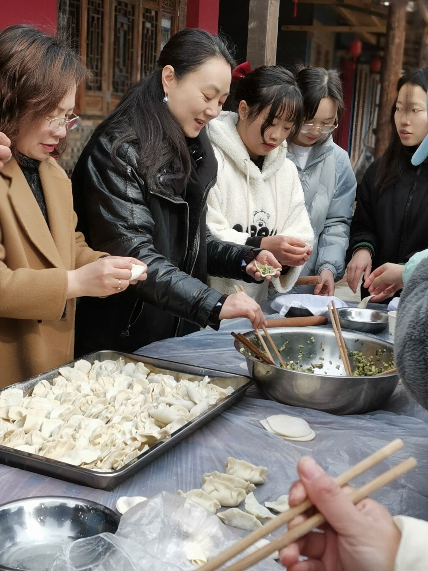 饺子作为中国的传统美食,代表着人们幸福圆满的美好希冀和浓浓的年味。活动之前,老师们进行了充分准备,精心选购了上好的肉食,制作了饺子馅。包饺子过程中,同学们分工合作,各显身手,挑馅、放料、捏褶.....一个个饺子在师生手中形态各异,展示了不同地方饺子的包法,传达着对家乡的思念与新春的祝福。