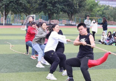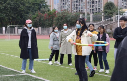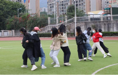 拒绝“躺平”,一起动起来。运动场的另一边,一场趣味PK赛正在热火朝天地展开中。运送乒乓球、踢毽子、转圈投球、转呼啦圈,组内同学分工明确进行接力,场内欢声笑语不断,老师也加入其中。在接下来的木头人游戏中,同学们再次重温儿时欢乐,时不时有同学一不小心一动又只能返回原点,而观众就充当上了监督员的角色。之后的背夹气球绑腿走、手拉手钻呼啦圈、拔河比赛则考验同学们的团结能力和默契,两旁的加油声不断,为趣味赛带来青春点缀。