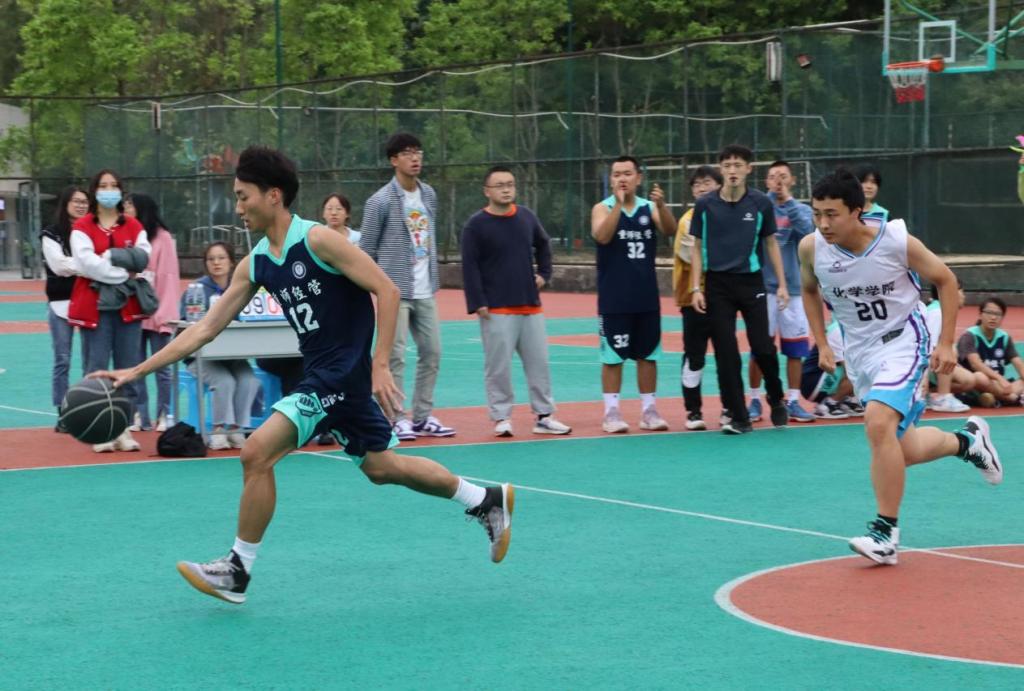 短暂休息后,下半场比赛男子运动员们上场,随着哨声响起,我院运动员们采取主动出击,以矫健熟练的动作迅速传球,直逼篮板。对方队员也迅速进入状态,开始你争我夺、你攻我守,球场氛围异常激烈。随着时间一分分流逝,比赛进入白热化阶段,三分投球、防守拦球、以及抢球罚球场面更是将场面氛围推向高潮。最终比赛以23:20落下帷幕,我院获得胜利。